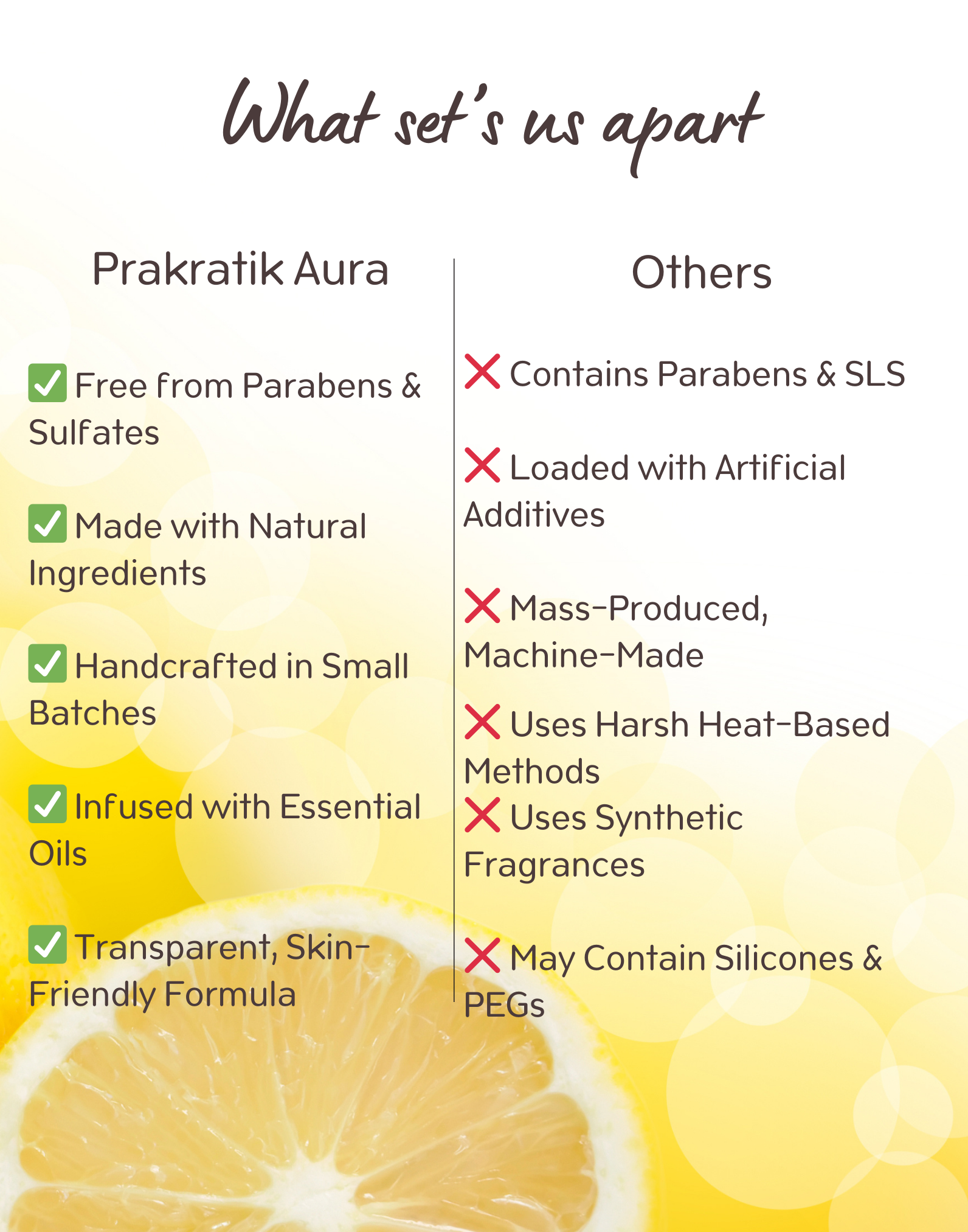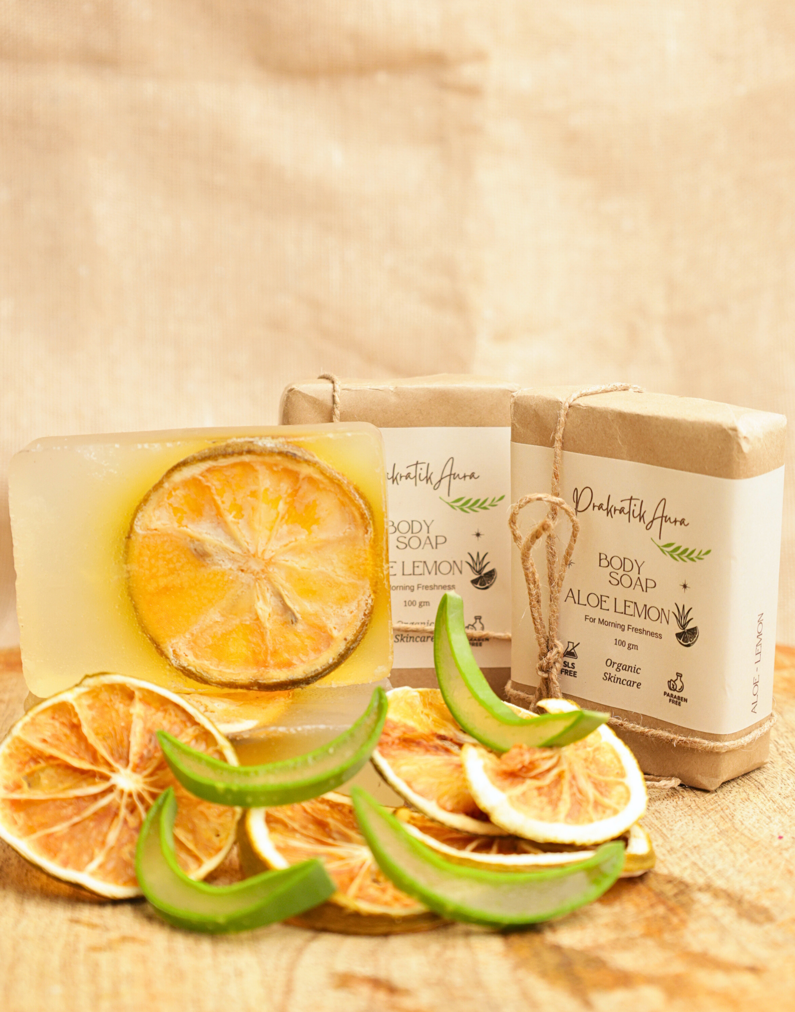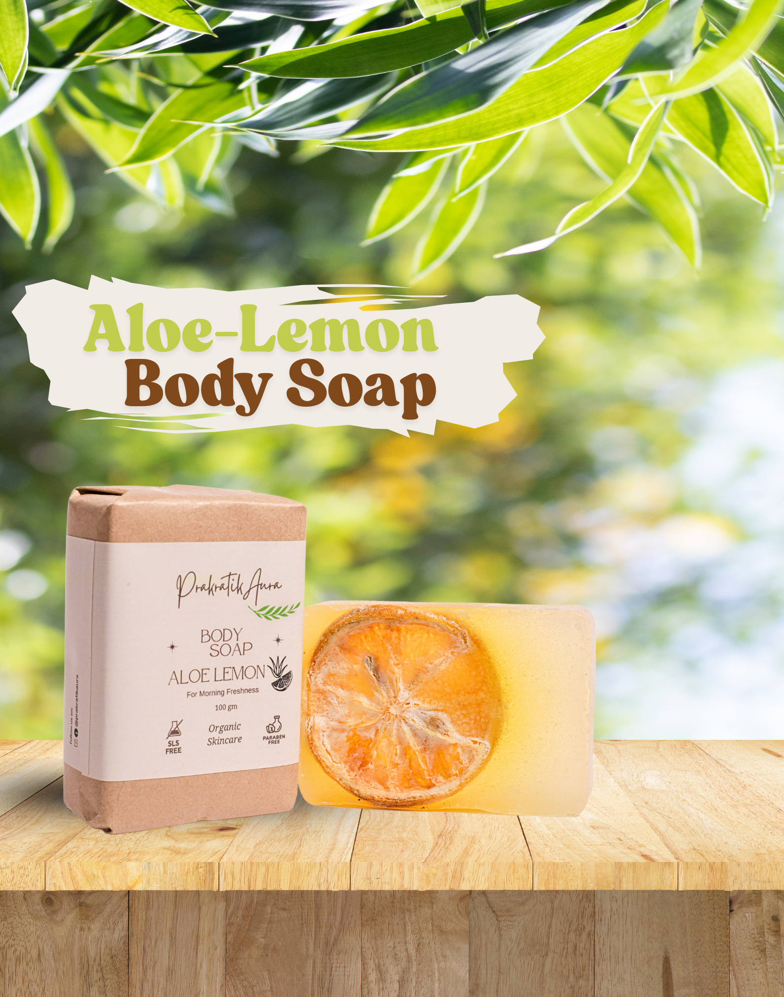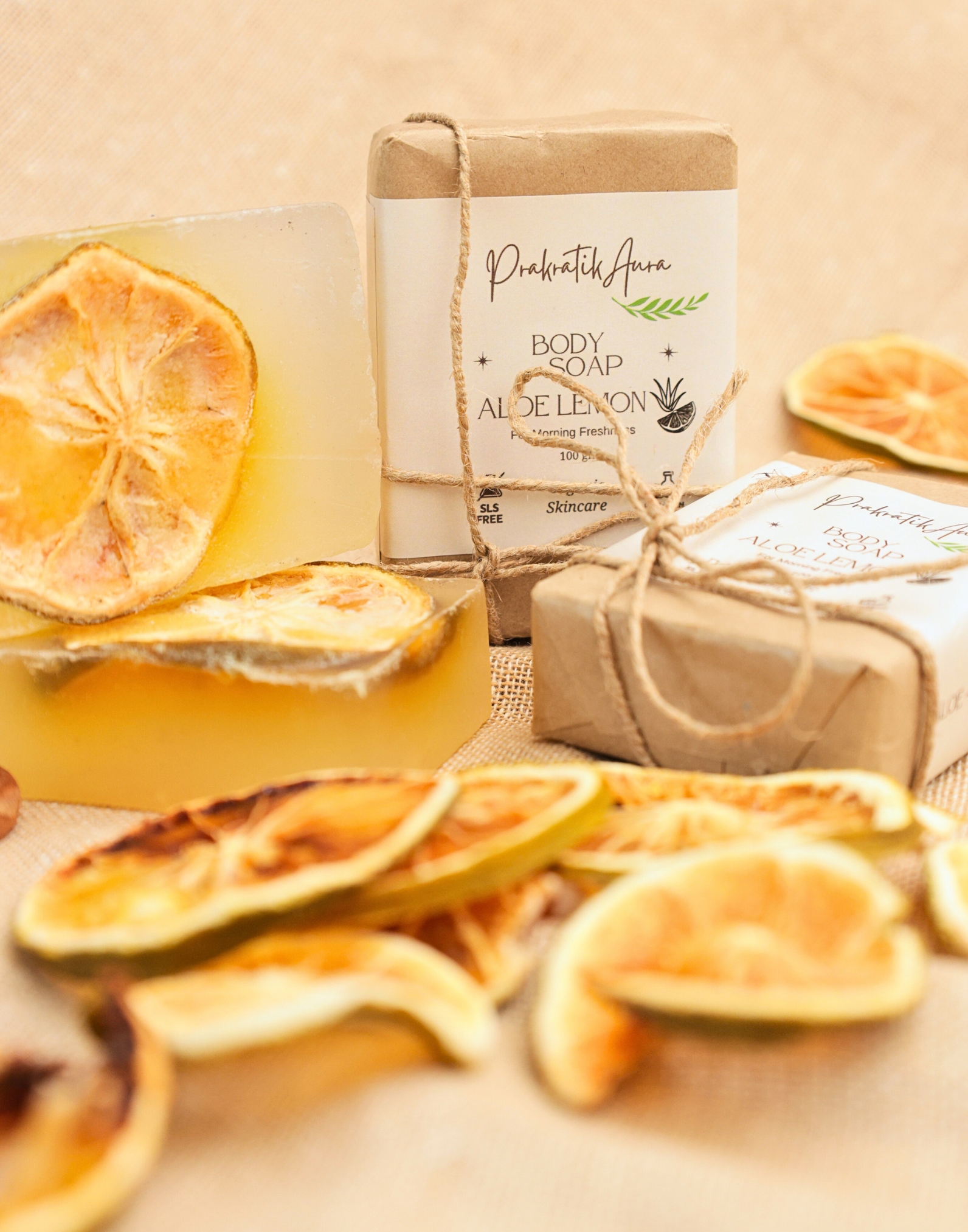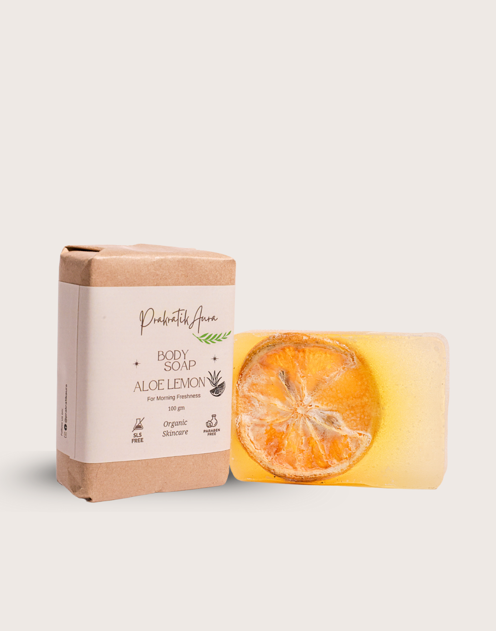 Revitalize your skin with Prakratik Aura's Handmade Aloe Lemon Body Soap. Infused with the soothing properties of Aloe Vera and the refreshing scent of Lemon, this soap gently cleanses and nourishes, leaving your skin soft, hydrated, and invigorated. The natural ingredients help brighten and tone your skin, while providing a burst of freshness. Free from SLS and parabens, it’s the perfect soap for a refreshing, daily cleanse.