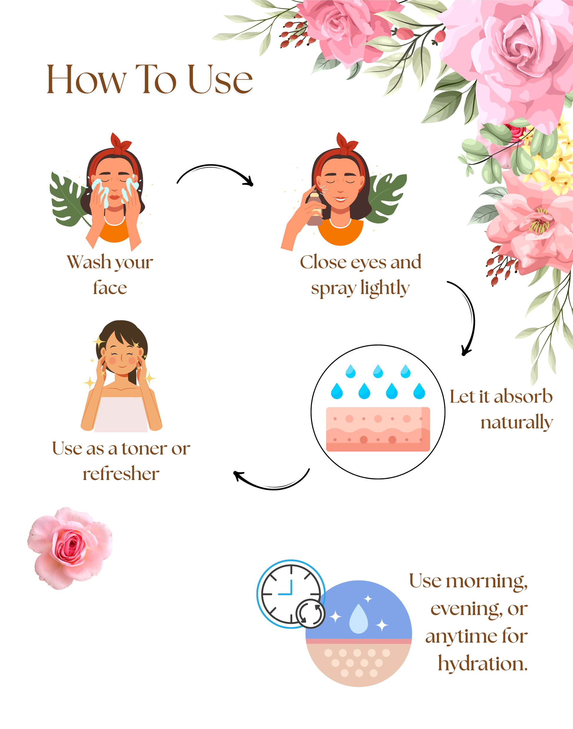 - Use as a toner before applying your favorite moisturizer or serum.