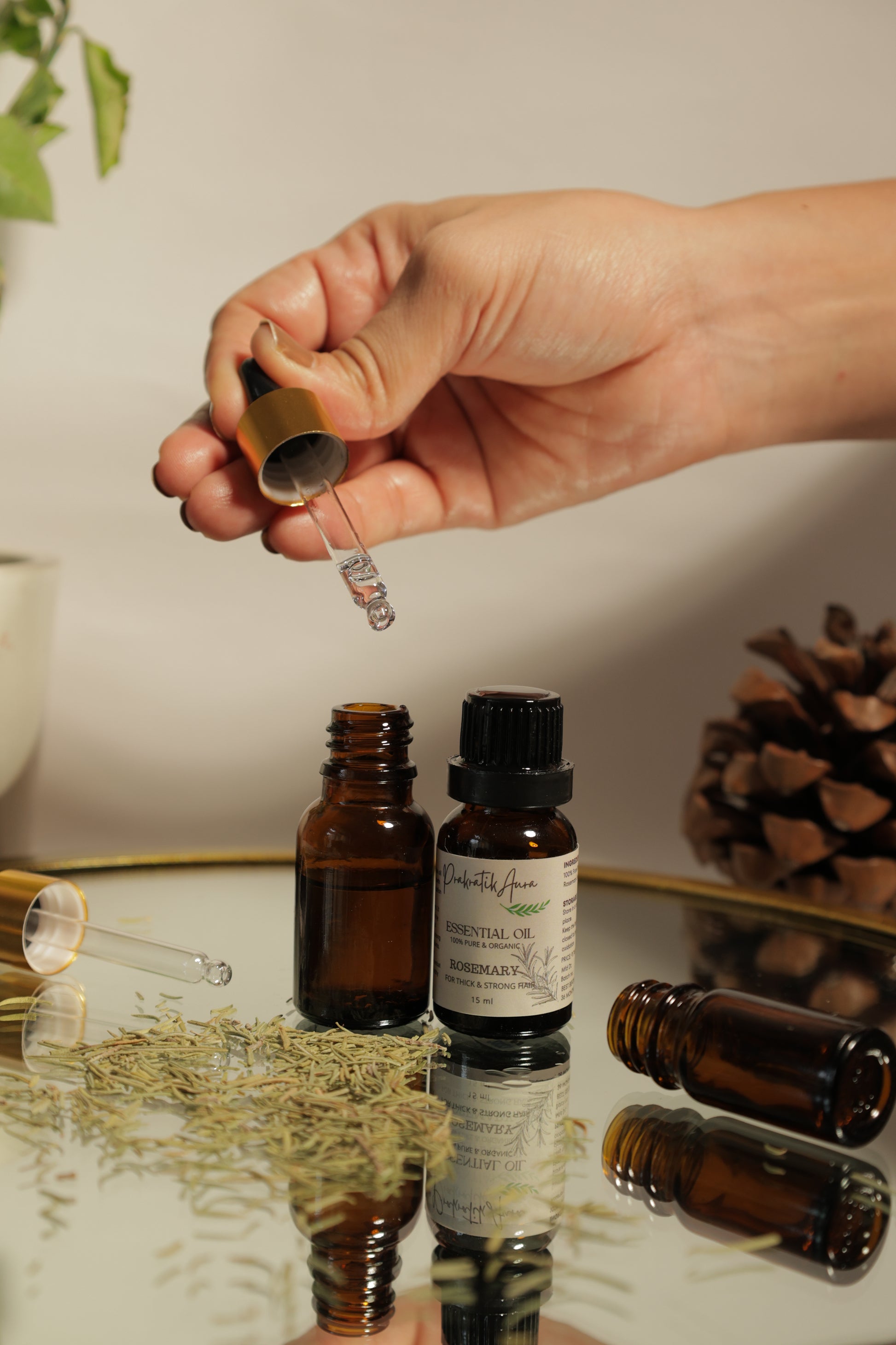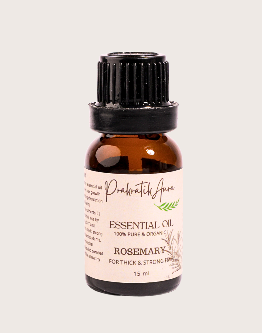 Awaken your senses with Prakratik Aura’s 100% Pure Steam-Distilled Rosemary Essential Oil, extracted from the freshest rosemary leaves. This invigorating oil refreshes both mind and body, promoting healthy hair growth, soothing the scalp, and enhancing mental clarity. With its fresh, earthy aroma, Rosemary Essential Oil is a natural way to boost focus, vitality, and overall well-being. Whether used for hair care, skincare, or aromatherapy, this essential oil brings a burst of nature’s goodness to your daily routine.